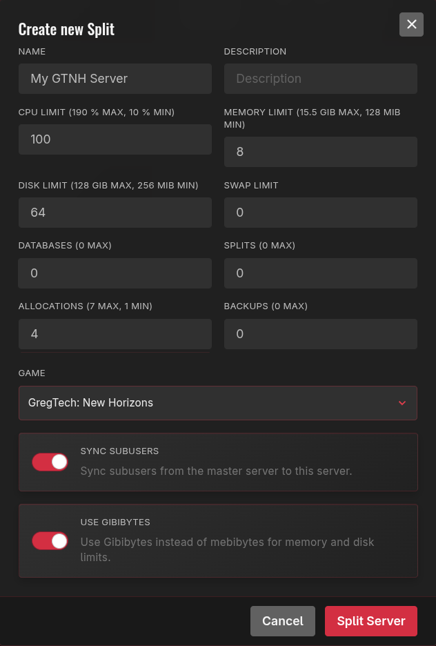 Example: While running a 12GB server, you can allocate 8GB of RAM to your GTNH run while using the remaining 4GB to run a Factorio server for you and your friends.