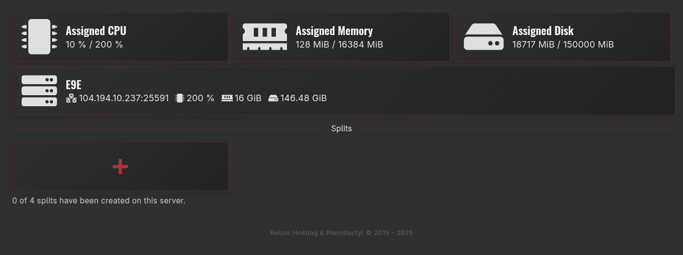 Splits. - The new split should be running. You can view it in your list of servers in our panel